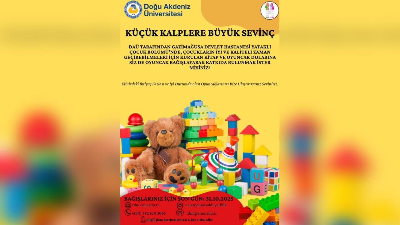DAÜ’den yapılan yazılı açıklamada, ihtiyaç fazlası ve iyi durumda olan oyuncaklarını bağışlamak isteyenlerin 31 Ekim tarihine kadar katkıda bulunabilecekleri belirtildi.