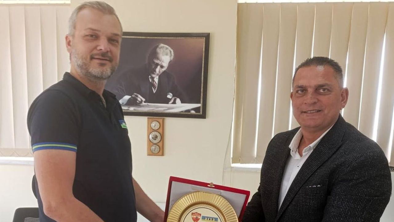 Ziyaret sırasında Karavezirler, AKSA Enerji’nin Kıbrıs Türk futboluna verdiği destek ve katkılardan ötürü Şentürk’e teşekkür ederek bir plaket takdim etti.