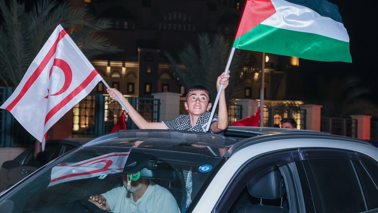 Türkiye, KKTC ve Filistin bayrakları taşıyan onlarca araçlık Gazze ile dayanışma konvoyunun turu, Lefkoşa şehir merkezinin gezilmesinin ardından Ledra Palace Sınır Kapısı'nda son buldu.