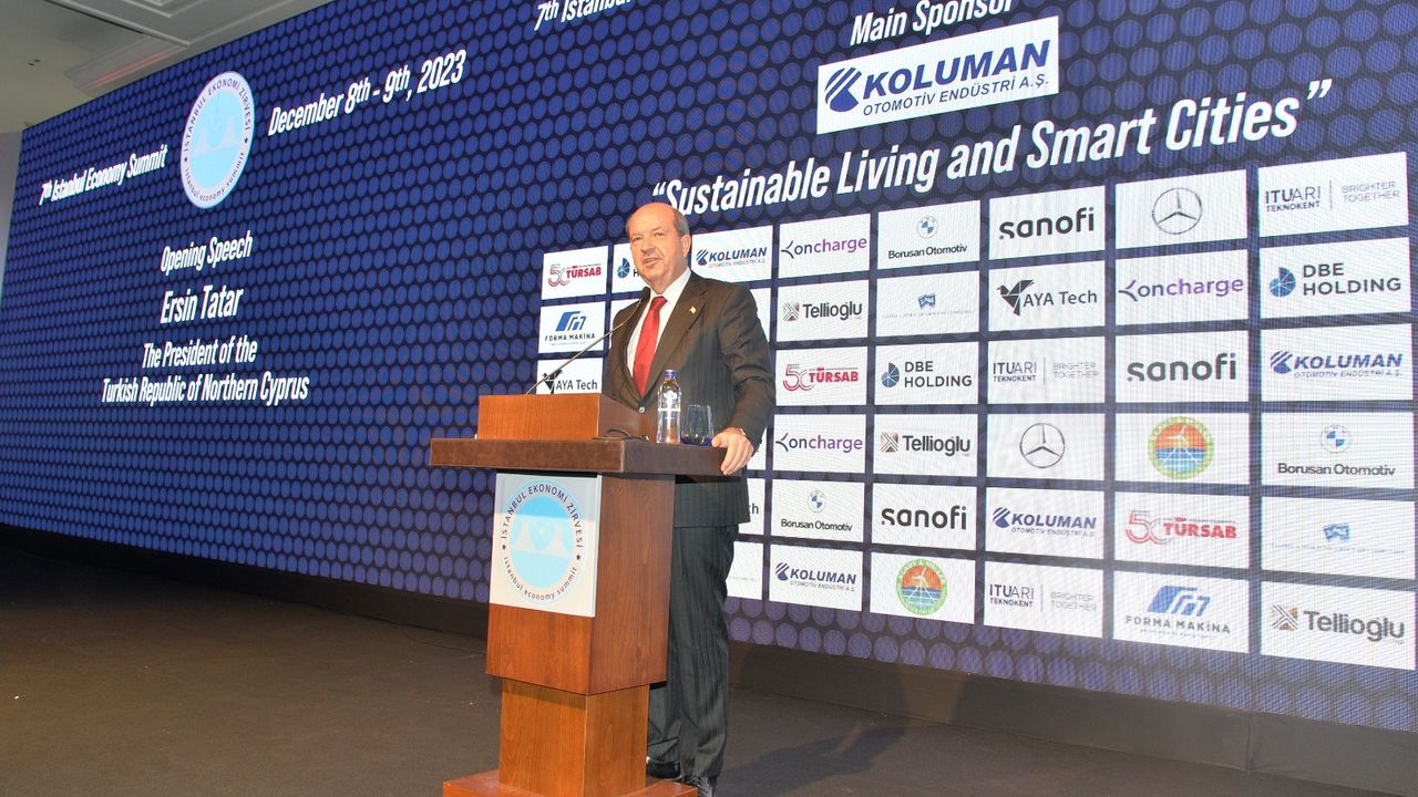 Cumhurbaşkanı Tatar, İstanbul’daki temasları kapsamında Çırağan Sarayı’nda yapılan 7’nci İstanbul Ekonomi Zirvesi’nde açılış konuşmasını yaptı.